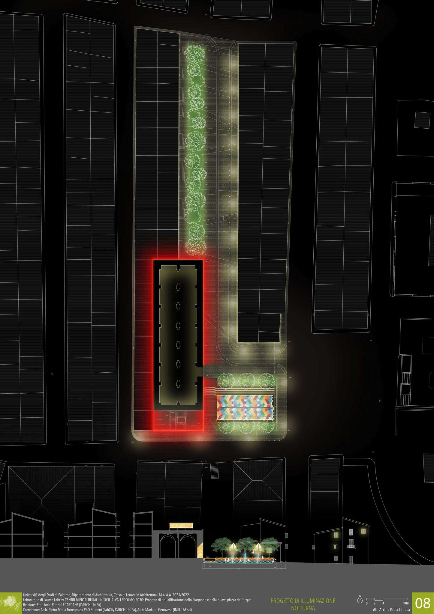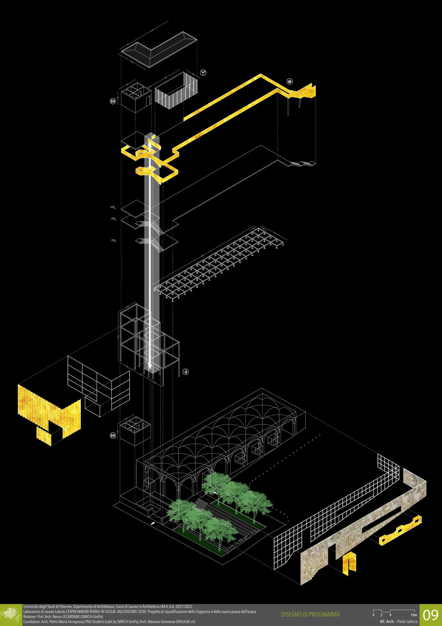 Particolare attenzione è dedicata al progetto dello spazio pubblico antistante lo Stagnone, che si estende per l’intero isolato urbano. La nuova Piazza dell’Acqua ridefinisce una centralità strategica nel centro storico di Valledolmo, risolvendo l’attuale salto di quota e trasformando un’area asfaltata e residuale in uno spazio civico riconoscibile, accessibile e identitario. La tesi dimostra come le criticità fisiche e morfologiche possano diventare opportunità progettuali, proponendo un metodo replicabile per altri interventi di rigenerazione urbana.